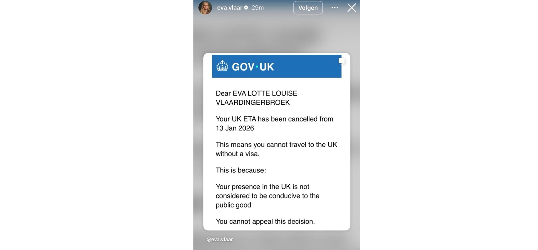Extreemrechtse influencer Eva Vlaardingerbroek niet langer welkom in Verenigd Koninkrijk