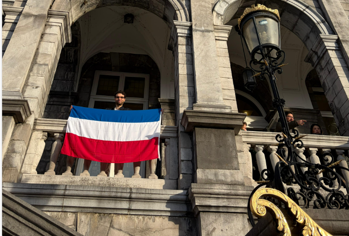 Ik werd wakker en zag de Nederlandse vlag op de deur van mijn woonkamer, een cadeau dat ik had gekregen. Eerst dacht ik eraan om hem op het balkon te hangen, maar zonder gordijnen voelde dat te open. Op de deur was hij beter op zijn plek. De vlag was groot, anderhalve meter, en nam ruimte in. Zoals dit moment zelf. Hij is nu een zichtbaar onderdeel van mijn leefruimte.