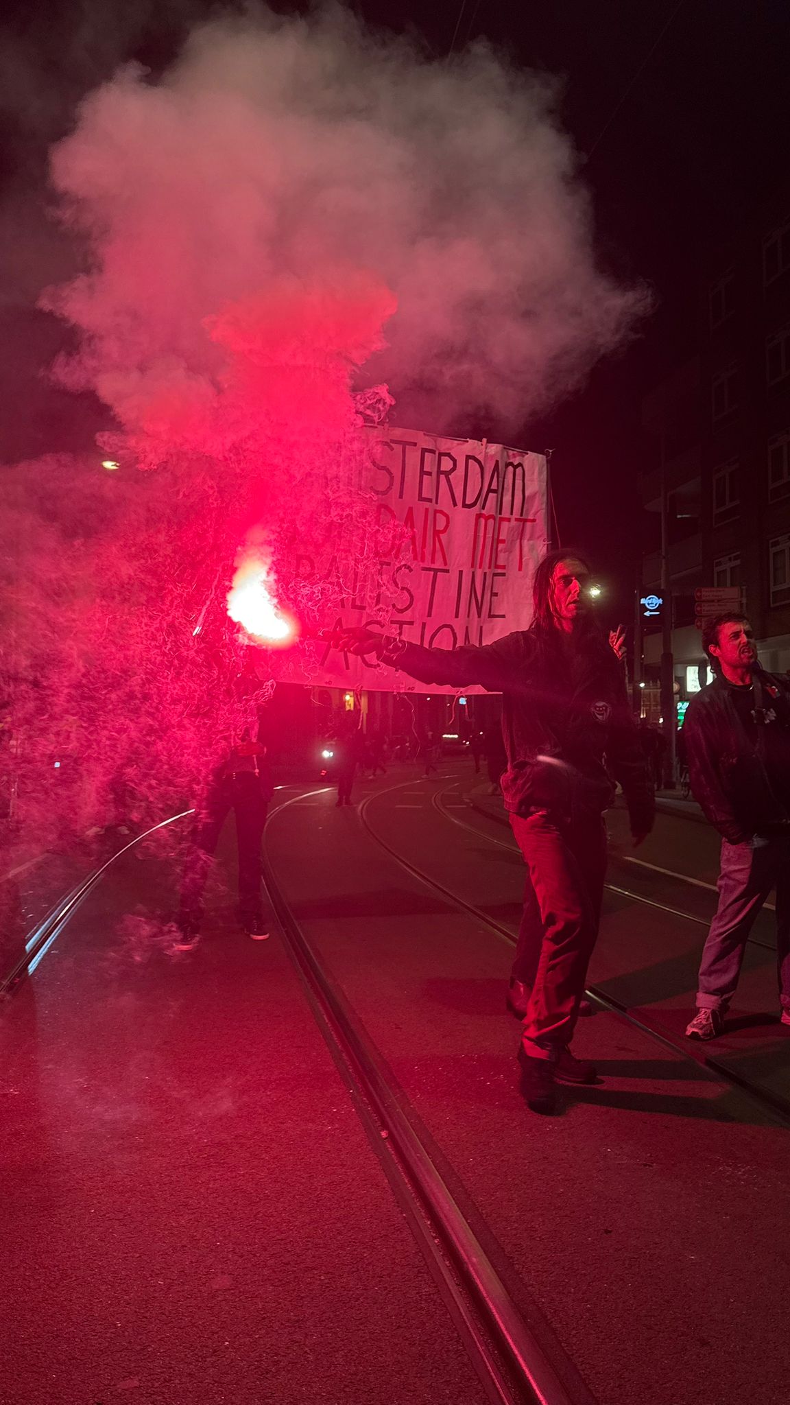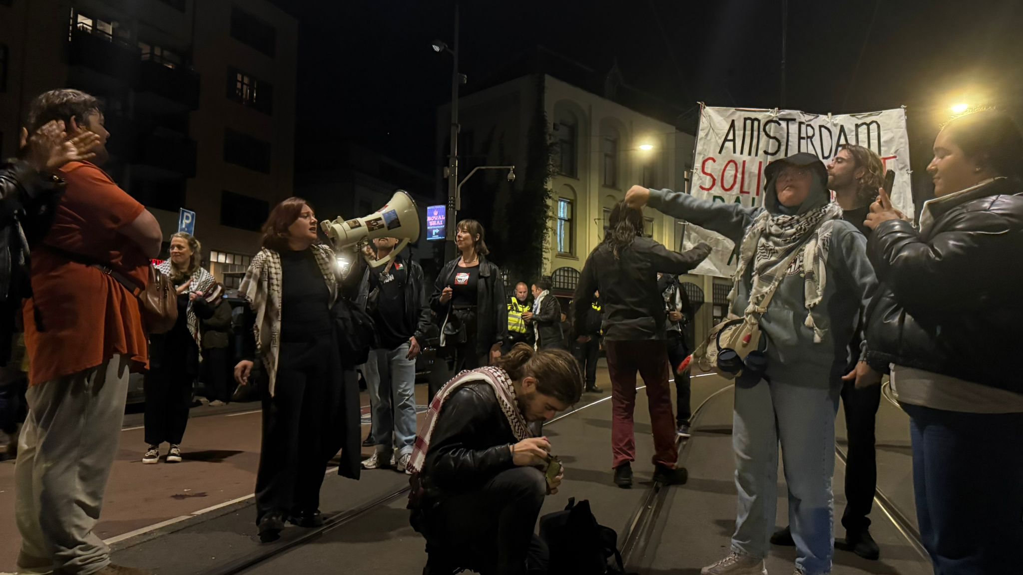 Het overwegend vreedzame protest werd verstoord door een kleine groep Amsterdammers. Een van hen probeerde het touw van een banner met de tekst ‘Amsterdam solidair met Palestine Action’ te verbranden met zijn aansteker. Volgens een aanwezige agent was er geen reden voor aanhouding. ‘Het was geen serieuze poging tot brandstichting, want hij kreeg zijn aansteker niet eens aan.’ De groep werd na een ID-controle snel weggestuurd om verdere escalatie te voorkomen.