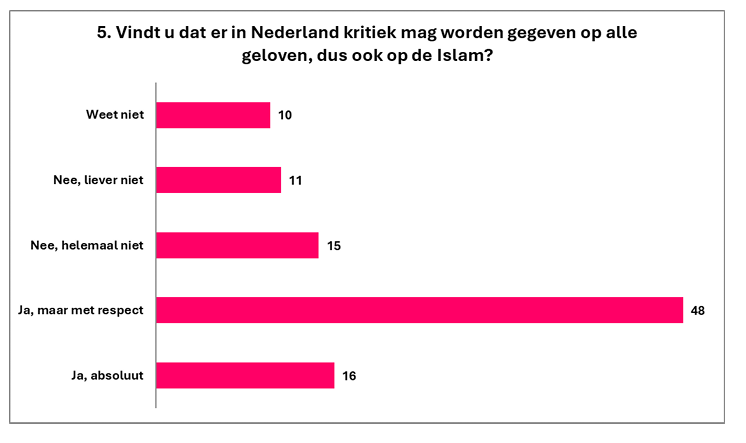 Vrijheid van meningsuiting wordt breed gesteund, maar veel mensen trekken een grens als het gaat om respect en religieuze spot. Respondenten met een Turkse en Marokkaanse achtergrond zijn hier het meest gevoelig voor, terwijl Surinaamse en Caribische Nederlanders vaker vinden dat kritiek gewoon moet kunnen. ‘Zij zijn daar over het algemeen stelliger in’, zegt El Kaddouri.